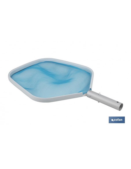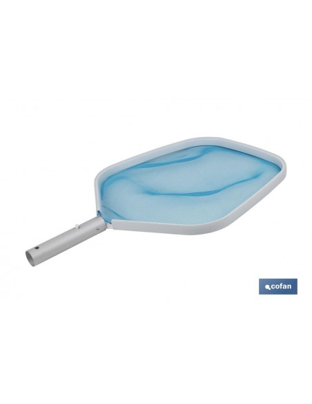 Recoge hojas para mantener la piscina libre de hojas, insectos y otros residuos flotantes. Está diseñado específicamente para facilitar esta tarea, permitiendo mantener la piscina en óptimas condiciones con el mínimo esfuerzo.Fabricado en aluminio con malla de polietileno duradero, este recoge hojas garantiza una larga vida útil. El material resistente asegura que la malla no se rompa ni se desgaste fácilmente, incluso con el uso frecuente.Con medidas de 50 x 33 cm, el recoge hojas ofrece una amplia superficie de captura, permitiendo recoger grandes cantidades de residuos en una sola pasada. Su diseño ergonómico facilita el manejo y reduce la fatiga durante el uso. La malla fina y resistente está diseñada para atrapar incluso los residuos más pequeños, asegurando que ningún fragmento de suciedad quede en la superficie del agua. Esto no solo mejora la apariencia de la piscina, sino que también contribuye a mantener el agua más higiénica.Equipado con un conector de Ø 2,8 cm, el recoge hojas se acopla fácilmente a cualquier pértiga o mango especial, proporcionando una conexión segura y estable, mediante el sistema rápido de clip. El recoge hojas y la pértiga permiten alcanzar los rincones más alejados de la piscina sin esfuerzo. Adecuado para cualquier tipo de piscina, ya sea en exteriores o interiores, este recoge hojas es una herramienta versátil que se adapta a diversas necesidades de limpieza. Es ideal para piscinas de todos los tamaños, spas y jacuzzis.Usos del Producto: Utilizar el recoge hojas diariamente para mantener la superficie de la piscina libre de hojas, insectos y otros residuos.Esto ayuda a prevenir la acumulación de suciedad en el sistema de filtración, mejorando su rendimiento y prolongando su vida útil. Así se asegura que el agua esté siempre limpia y lista, proporcionando un ambiente seguro y agradable.
