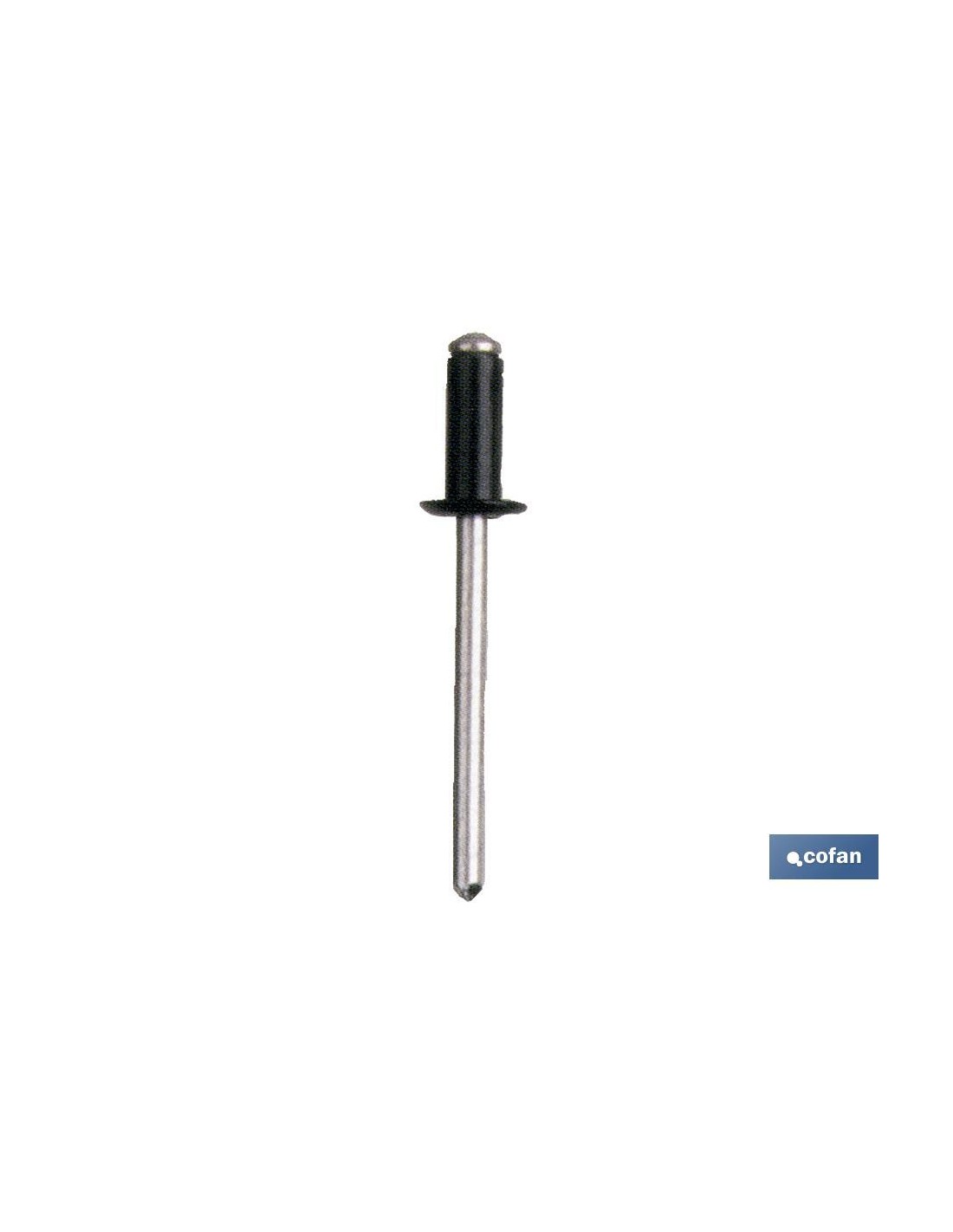 Este remache está diseñado para unir todo tipo de materiales metálicos, así como distintos materiales donde no se requiera un apriete específico. Color negro