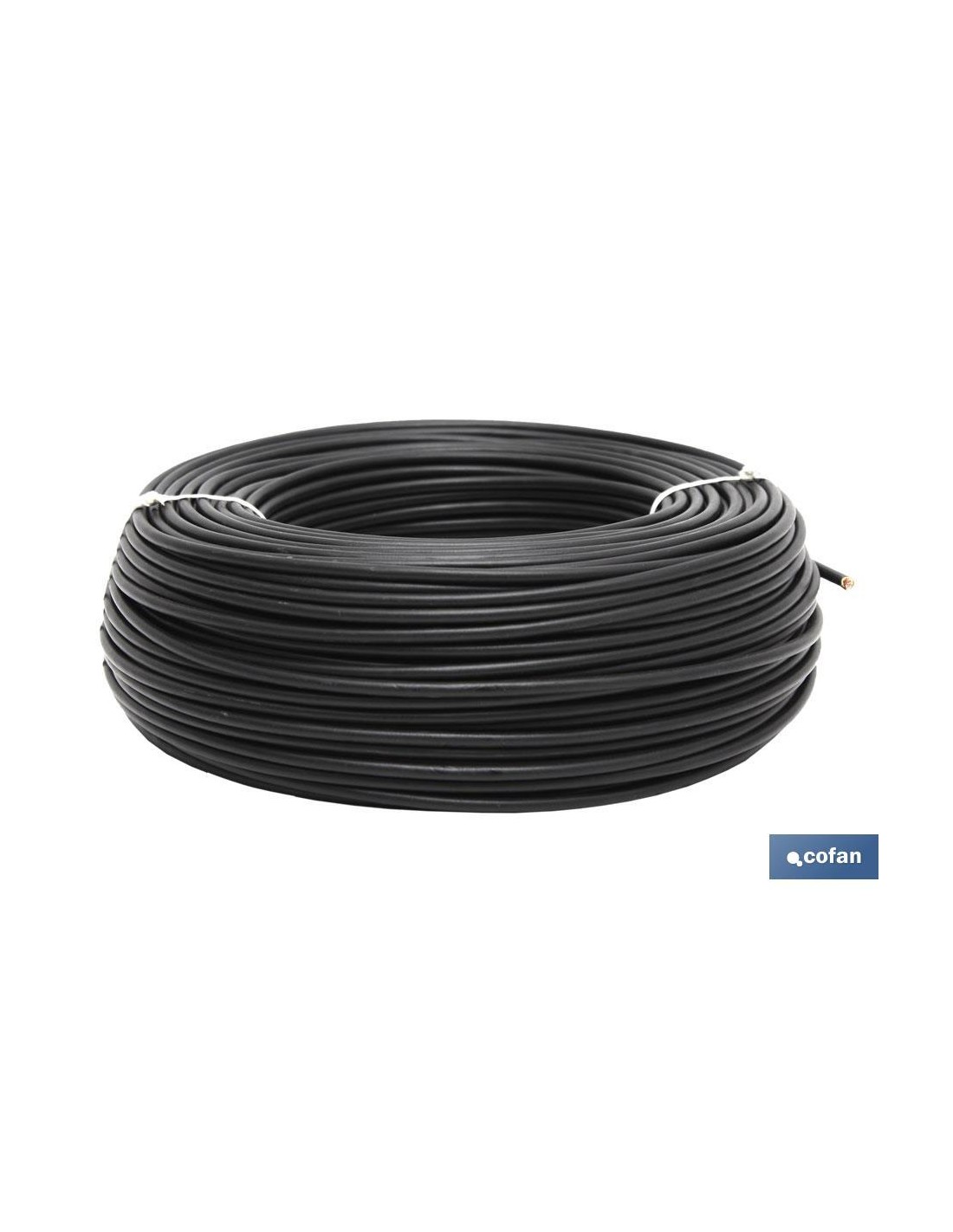 Rollo de 100 metros de cable eléctrico H07V-K Bricofan en color negro, rojo, marrón, gris, azul y amarillo/verde, con secciones desde 1,5 mm2 hasta 6 mm2.