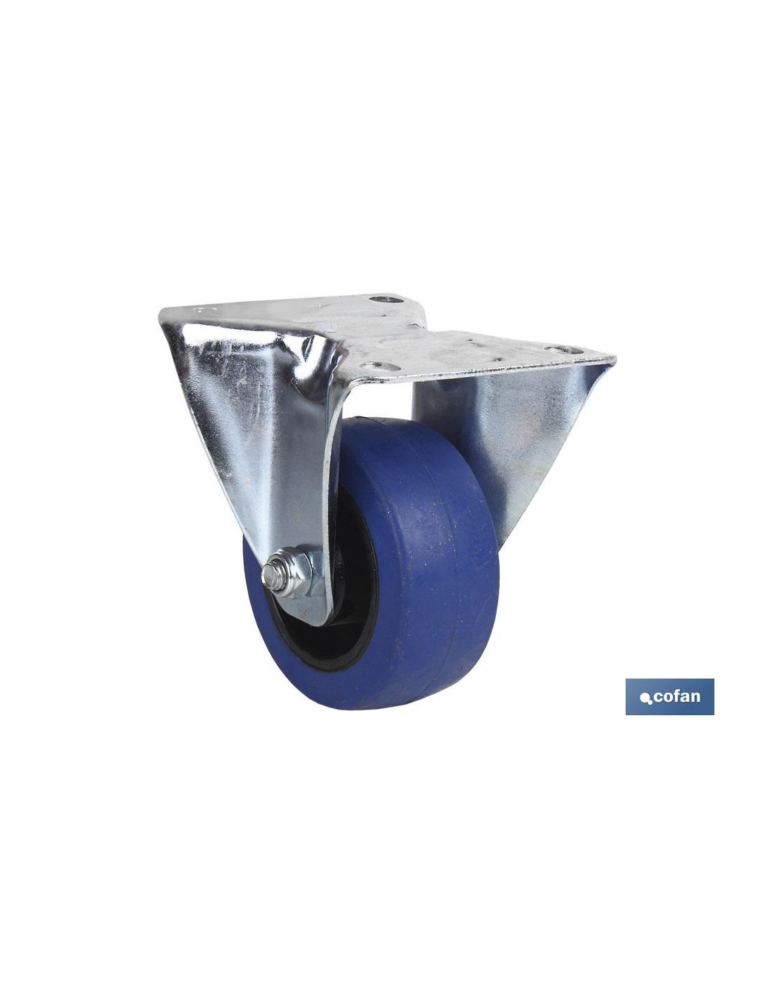 Rueda de goma azul fija | Con cojinete de rodillo | Para pesos de hasta 150 kg y diámetros de 80, 100 y 125 mm