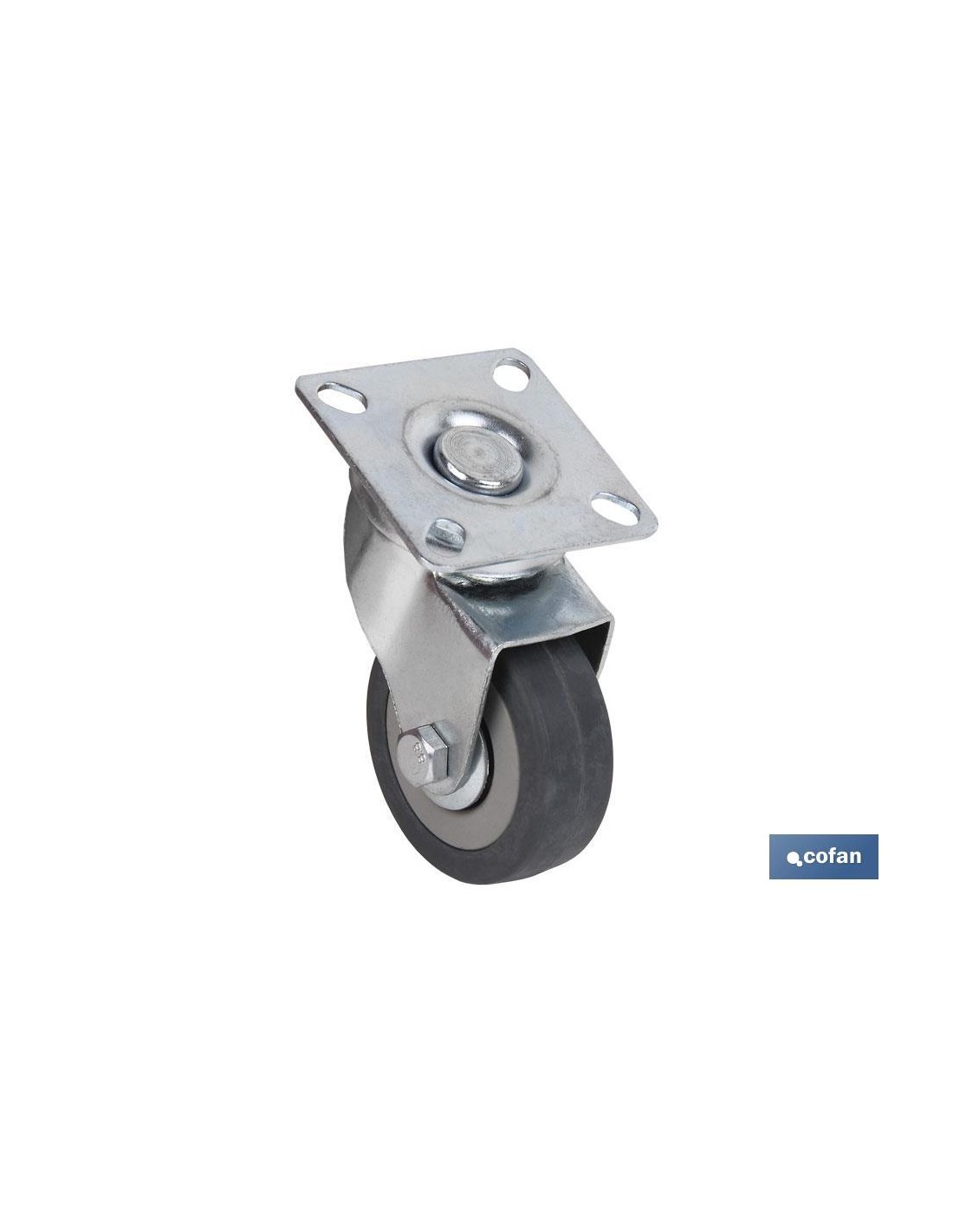 Rueda de goma gris con placa giratoria | Diámetros desde 50 mm hasta 75 mm | Para pesos máximos desde 36 kg hasta 45 kg