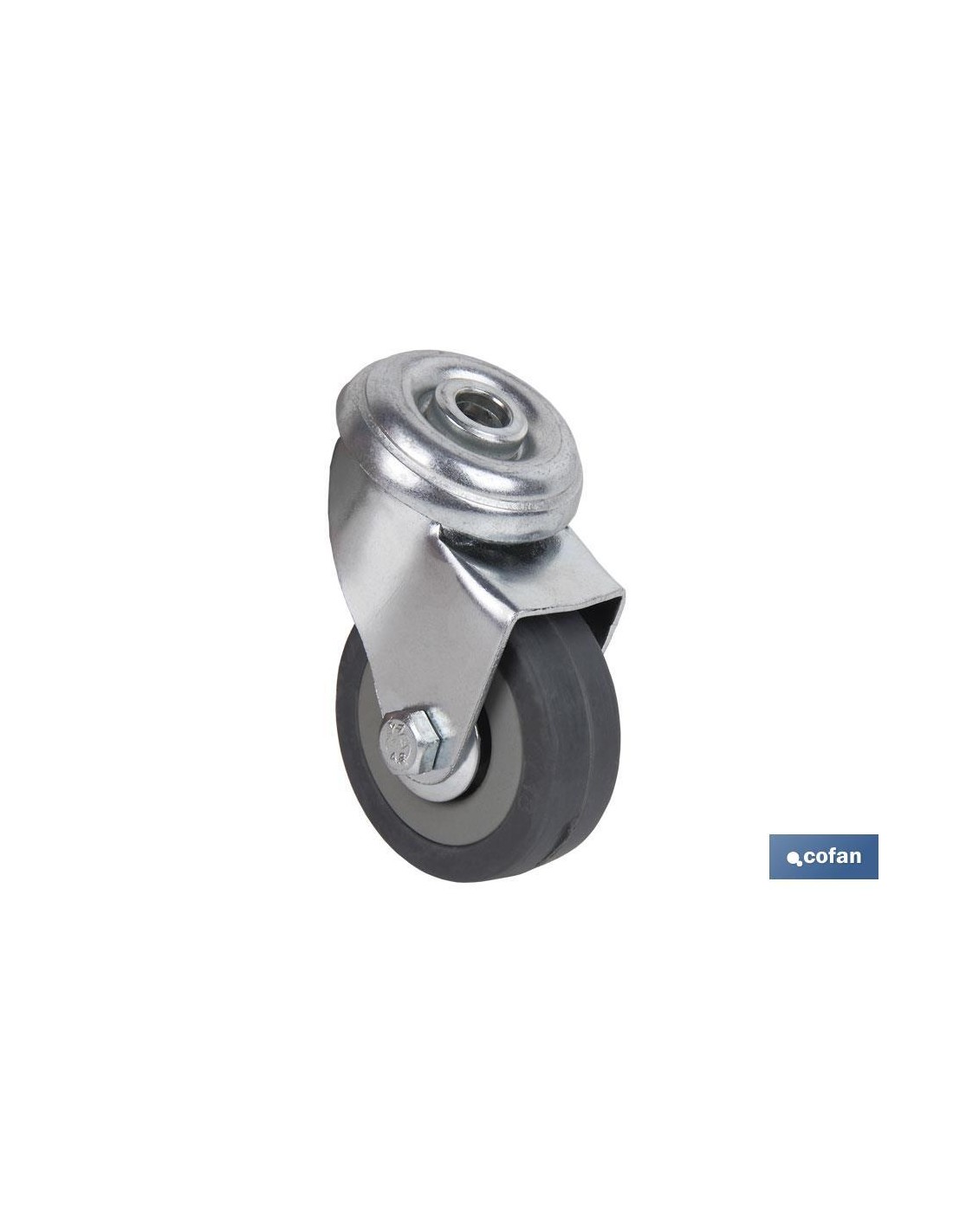 Ruedas de goma gris para tornillo pasante, ideales para hostelería, mobiliario, expositores, mostradores, decoración y equipamiento comercial. Pesos de hasta 45 kg. Fabricadas en goma de color gris y acero cincado. Ruedas adecuadas para uso industrial y doméstico. Estas ruedas giratorias están hechas de goma dura y no arañan ni dañan el suelo, por lo que pueden usarse en suelos delicados sin causar ningún daño.