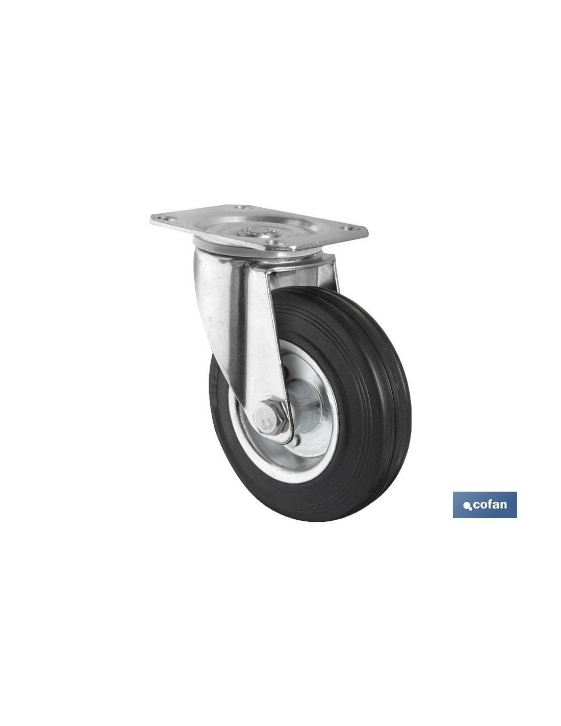 Ruedas de goma con metal y placa especiales para carretillas industriales, contenedores, cajas de herramientas, etc. Para pesos de hasta 150 kg. Fabricadas en goma de color negro y acero cincado. Ruedas adecuadas para uso industrial y doméstico. Están hechas de goma dura y no arañan ni dañan el suelo, por lo que pueden usarse en suelos delicados sin causar ningún daño.