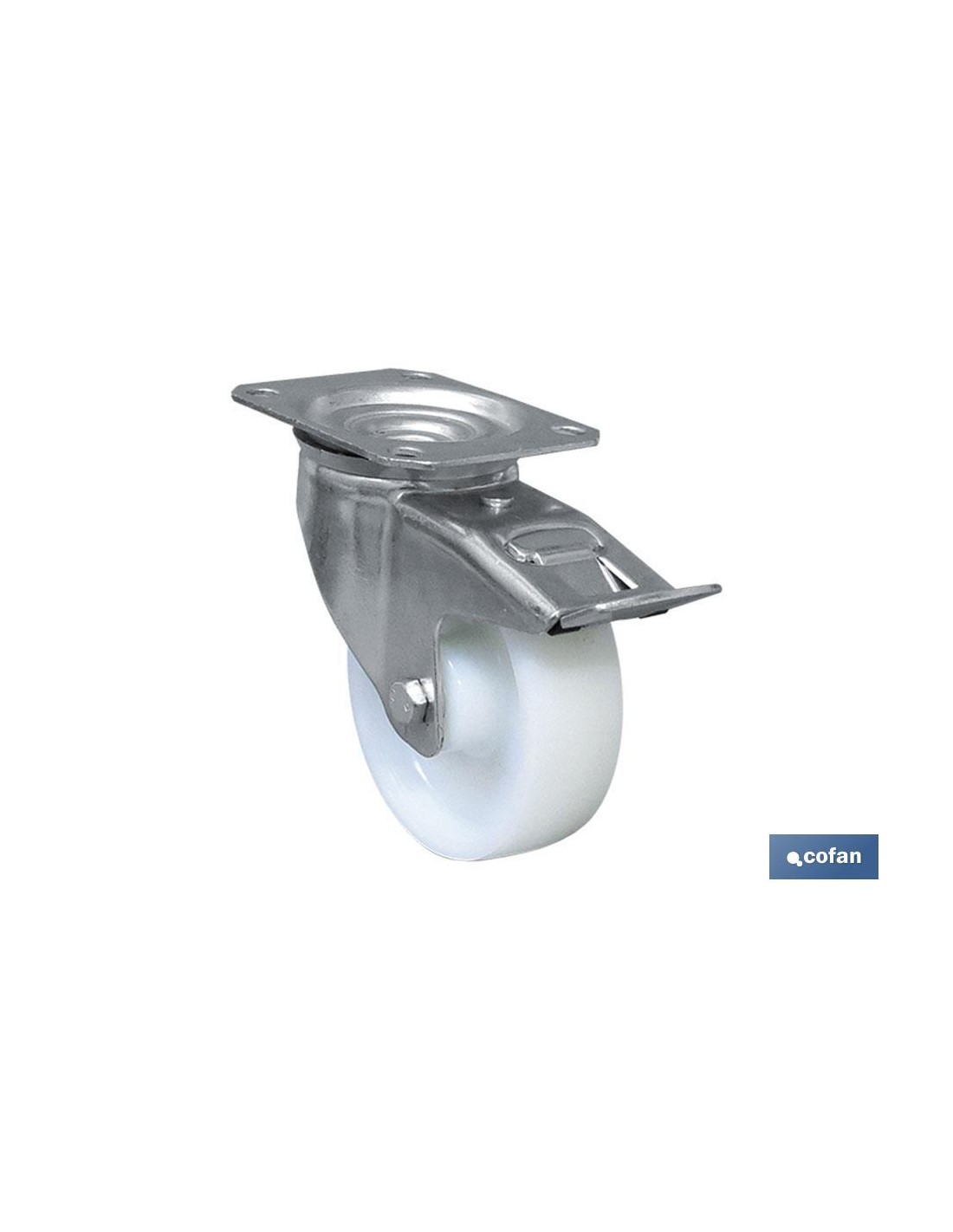 Ruedas nylon placa y freno con cojinete liso para uso industrial, especiales para carretillas industriales, contenedores, cajas de herramientas, etc. Para pesos de hasta 150 kg. El diseño elegante con color blanco combinará con cualquier decoración, perfecto como ruedas giratorias de repuesto para uso doméstico, de oficina e industrial. Suaves y silenciosas, de marcha suave y placa de fijación superior duradera. Estas ruedas permiten mover materiales pesados fácilmente sin hacer ruido. Hechas de nylon y aleación de alta resistencia. Estas ruedas para muebles que no dejan marcas, son resistentes al desgaste y duraderas para un uso prolongado.