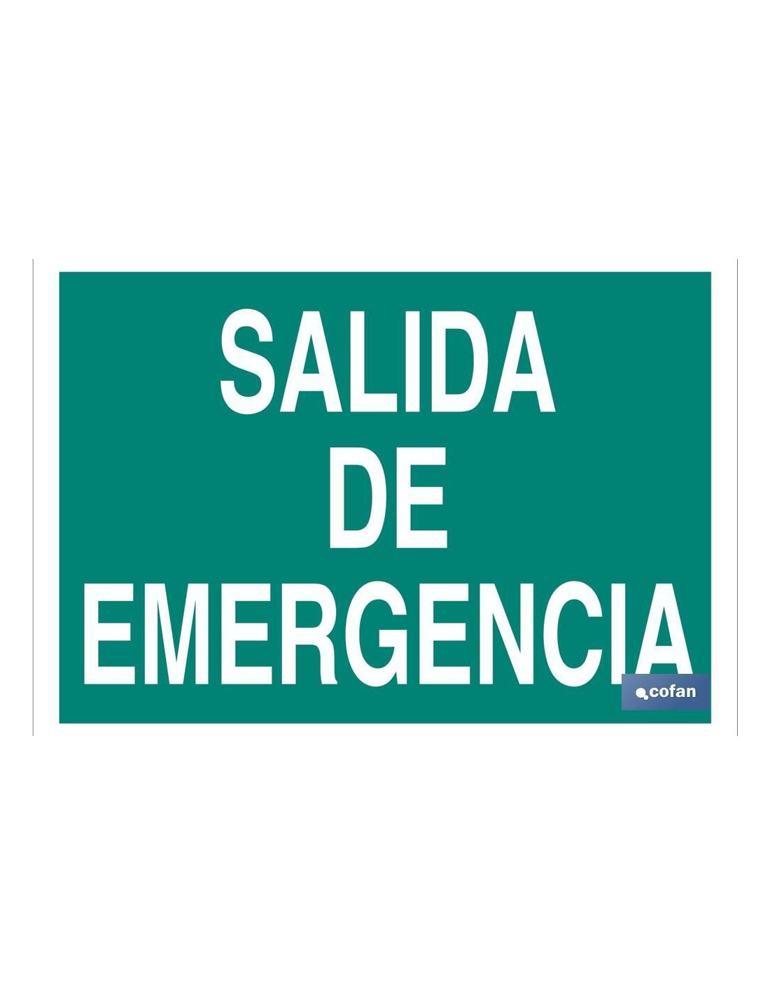 Señal de evacuación con texto salida de emergencia. Tamaño y material a elegir (luminiscente y adhesivo). El diseño de la señal puede variar, pero en ningún caso se variará el significado de la misma.