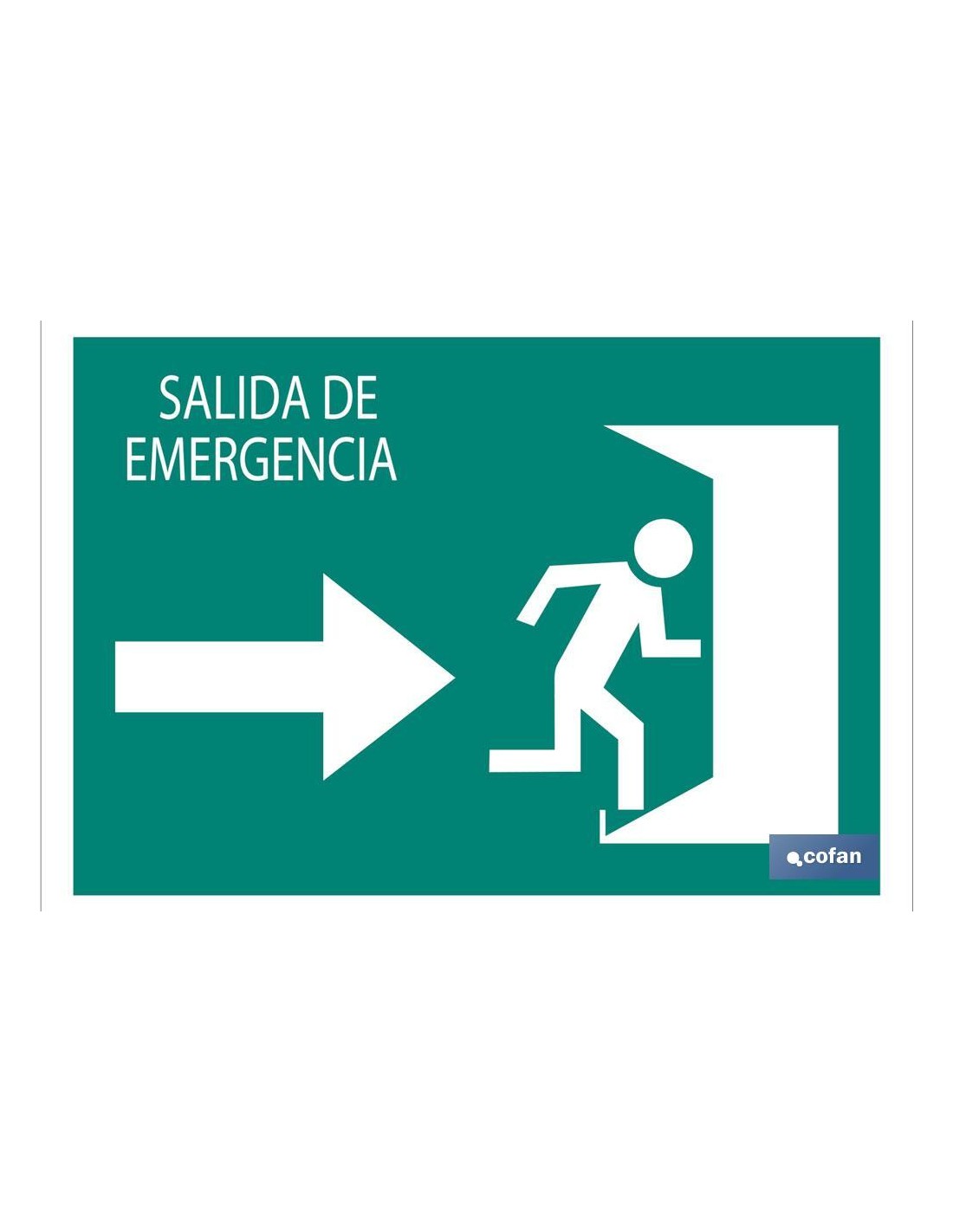 Señal de evacuación texto salida de emergencia puerta hacia la derecha. Señal en Pictograma. Tamaño y material a elegir (luminiscente y adhesivo). El diseño de la señal puede variar, pero en ningún caso se variará el significado de la misma.