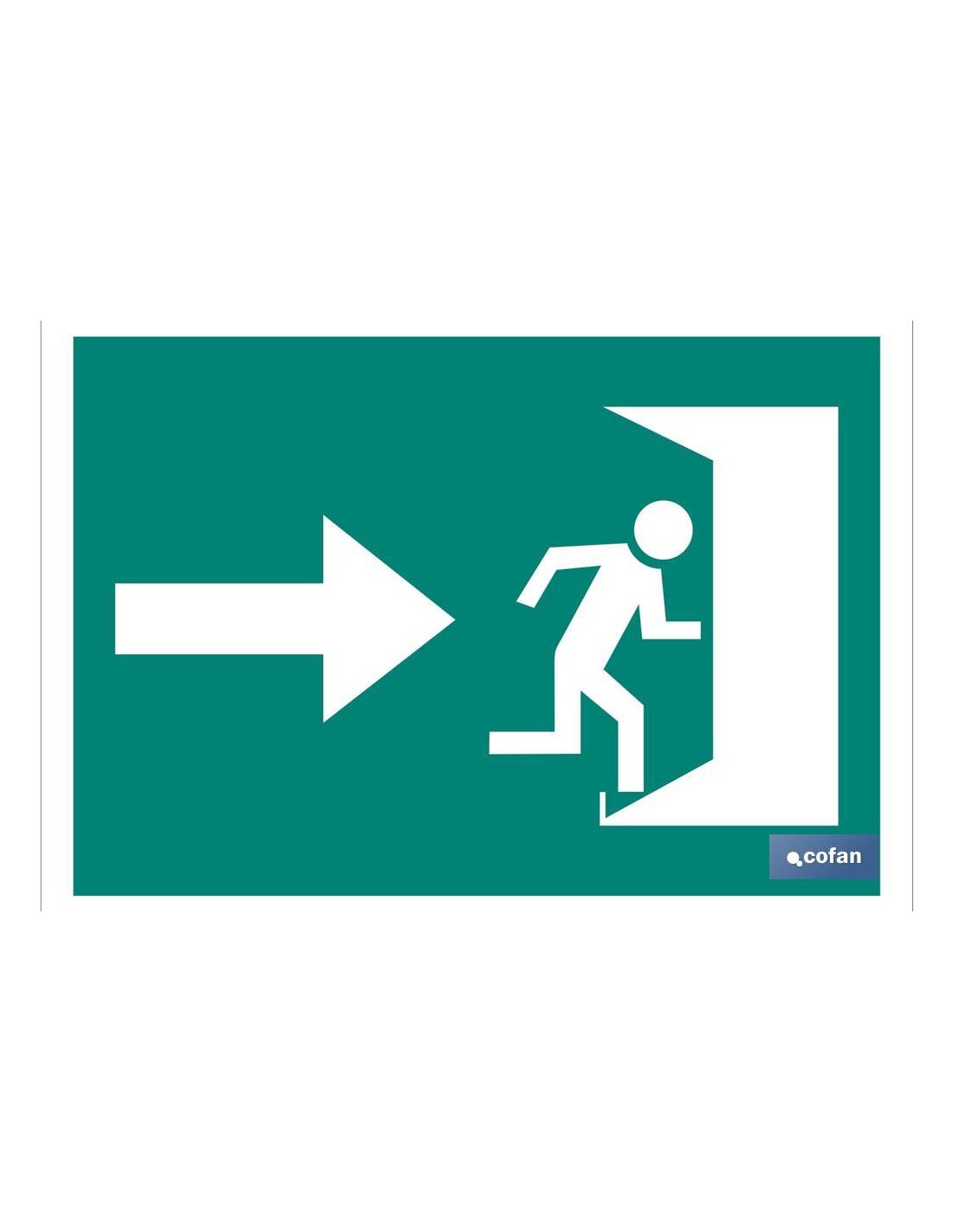 Señal de Evacuación de salida de emergencia puerta derecha. Señal en Pictograma. Tamaño y material a elegir (luminiscente y adhesivo). El diseño de la señal puede variar, pero en ningún caso se variará el significado de la misma.