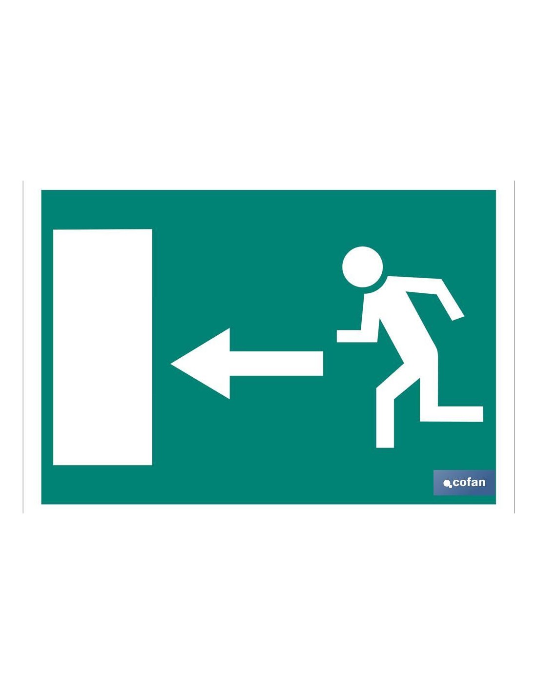 Señal salida de emergencia luminiscente puerta izquierda en varias medidas. El diseño de la señal puede variar, pero en ningún caso se variará el significado de la misma.