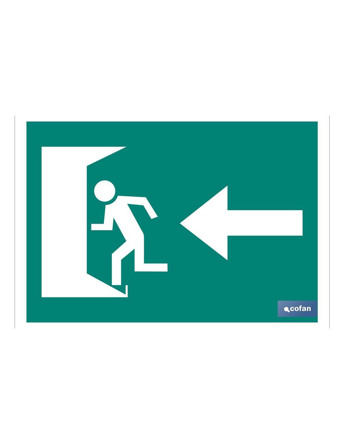 Señal salida de emergencia luminiscente puerta a la izquierda en varias medidas. El diseño de la señal puede variar, pero en ningún caso se variará el significado de la misma.