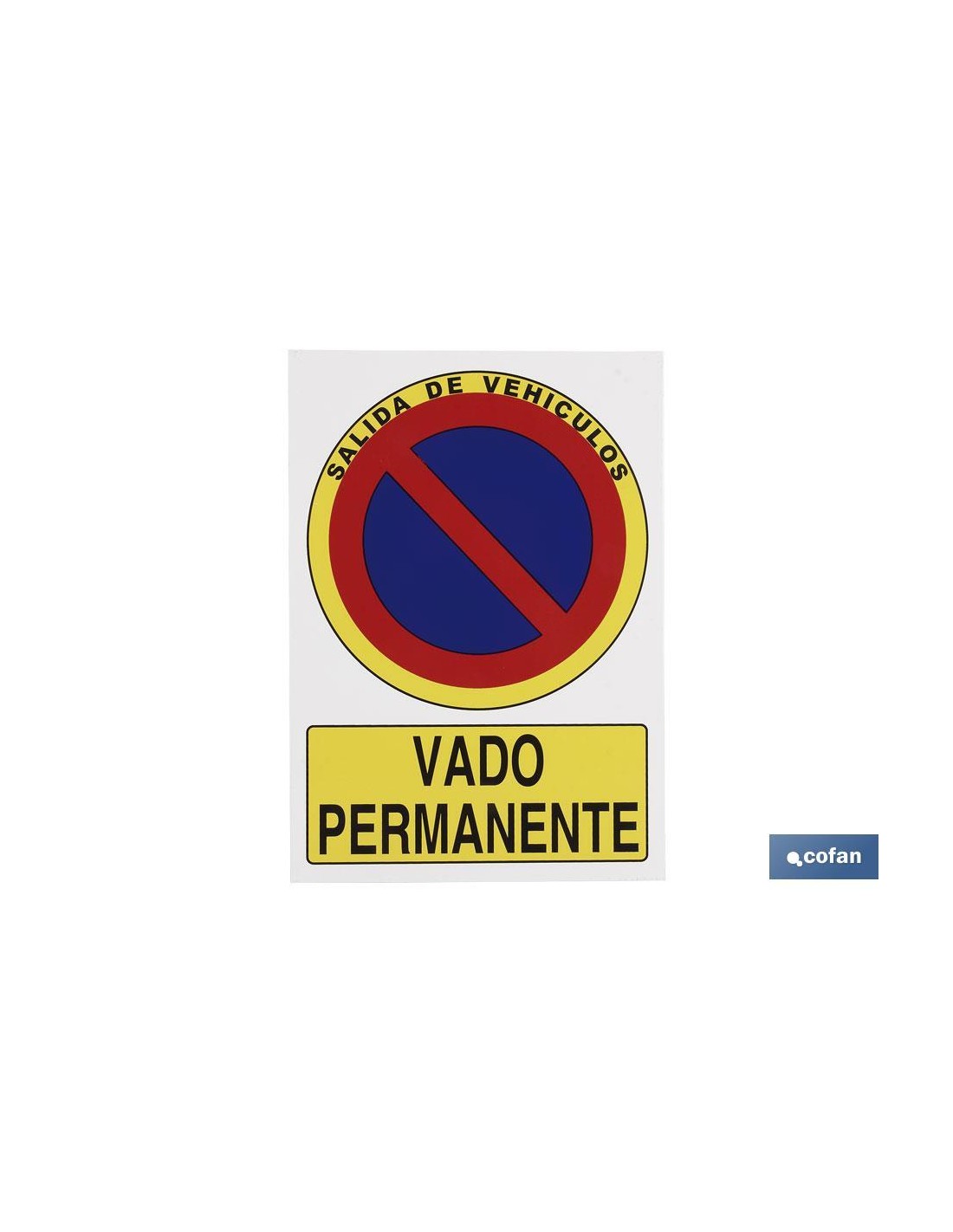 Señal Vado Permanente Aluminio. El diseño de la señal puede variar, pero en ningún caso se variará el significado de la misma.