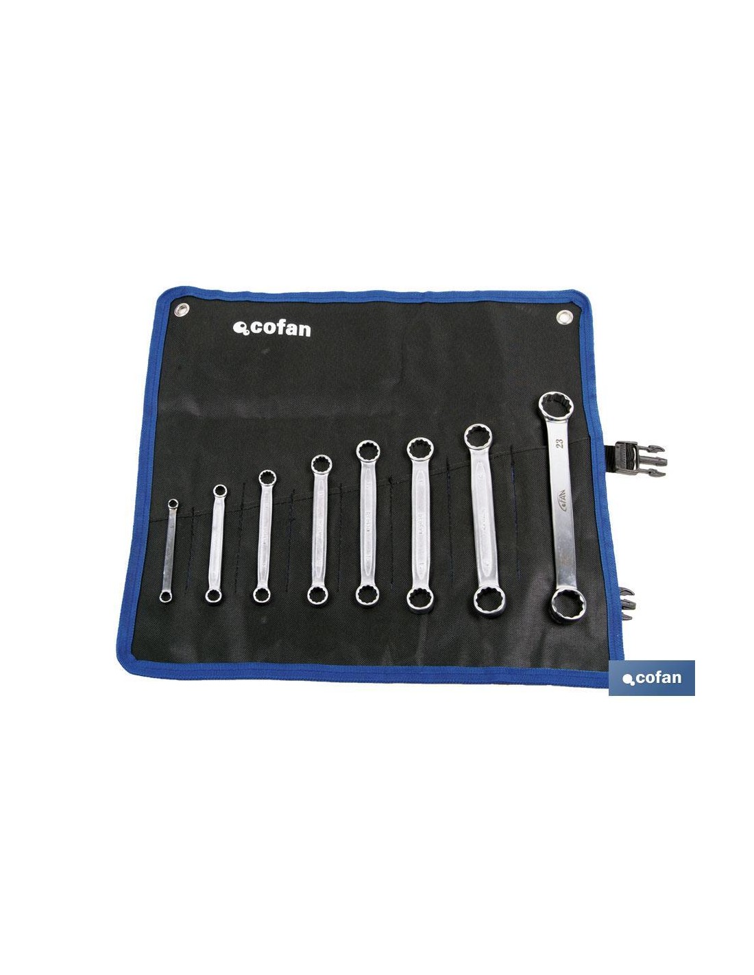 Juegos de llaves estrella plana pulidas, en juegos de 8 piezas. Fabricadas en acero al cromo-vanadio, dándole larga vida, resistencia a la deformación y alta capacidad de esfuerzo. Llaves de doble boca con acabado cromado. Contenido del set de 8 piezas SW 6 x 7, 8 x 9, 10 x 11, 12 x 13, 14 x 15, 16 x 17, 18 x 19 y 21 x 23. Con 12 caras en forma recta y con aristas redondeadas. Llaves forjadas con dos alojamientos hexagonales.