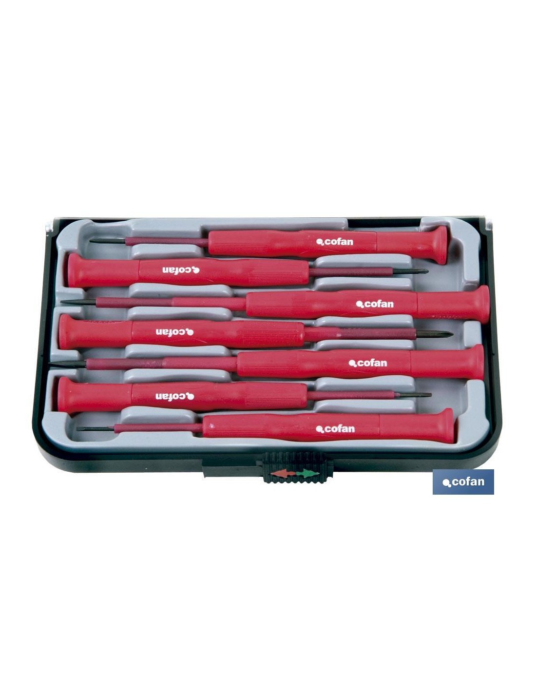 Juego de destornilladores aislados de alta precisión. Contenido de 7 unidades en planos y Phillips ideales para trabajos de alta precisión en electrónica y componentes eléctricos. Incluye estuche de plástico.