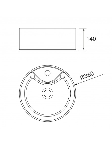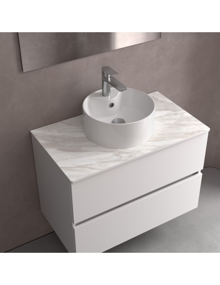 Lavabo de posar LISBOA sin sifón ni desagüe clicker PORCELANA BLANCA Ø 360 x 140 mm