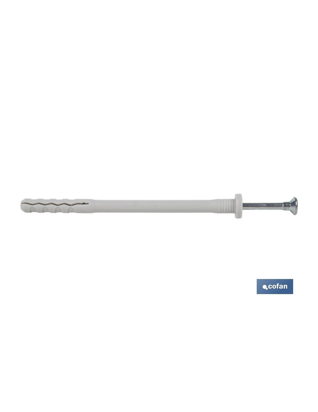 Diámetro de Taladro D: 5 | Longitud del Taco LD: 50 | Profundidad del Taladro LB: 60 | Profundidad Zona Expansión LV: 25 | Espesor a Fijar S: 23 | Piezas por Caja: 100 | Piezas por Paquete: 2700