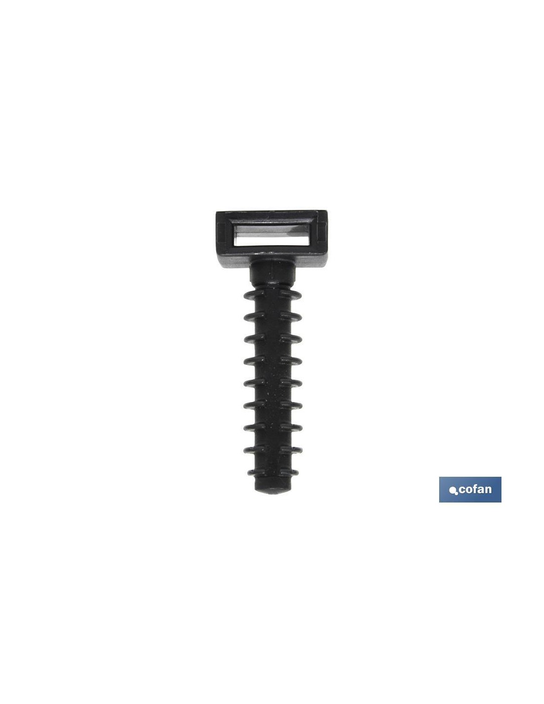Taco para bridas en nylon para taladro de 6 y 8 mm. Con dentado extra resistente para la mejor fijación. Cabeza reforzada y preparada para el uso de varias medidas de abrazadera.