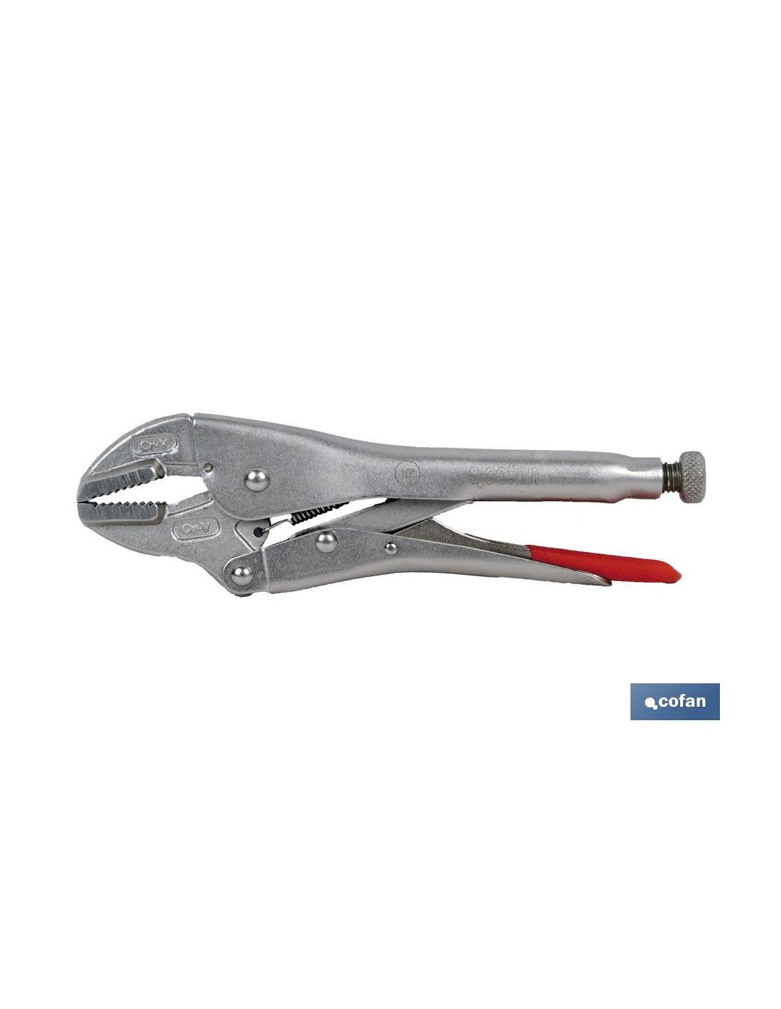Tenazas Grip o mordazas de palanca con Boca recta. Capaz de soportar una carga máxima de la pinza de 200 N. Capaz de proporcionar un par mínimo de 55 Nm para piezas redondas y 100 Nm para piezas hexagonales.