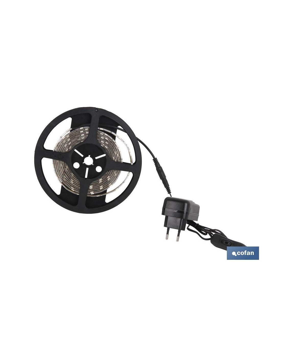 Tira Led 3 m. Divisible cada 3 Led. Flexible. Autoadhesiva. IP65 Resistente al agua. 50000 horas de vida útil. Incluye adaptador transformador máximo 3 m e interruptor. 85% menos de consumo.