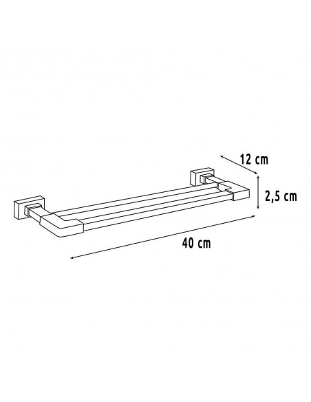 ARIES es una colección que cubre la necesidad de tener un accesorio de baño con líneas cuadradas y rectas. El toallero de barra doble es una solución muy práctica que complementa el uso del lavabo. Medidas 40x2,5x12 cms