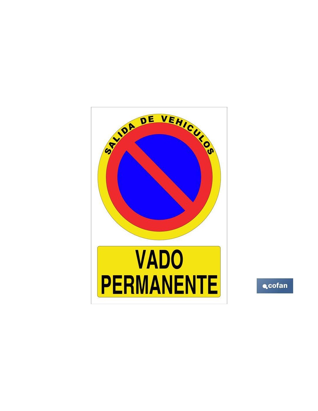 Señal vado permanente en adhesiva y poliestireno con varias medidas. El diseño de la señal puede variar, pero en ningún caso se variará el significado de la misma.