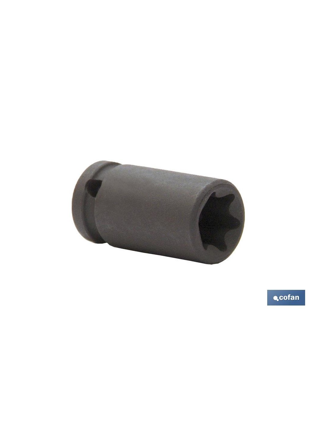 Vaso de impacto negro 1/4" boca torx hembra. Medidas desde E4 hasta E14