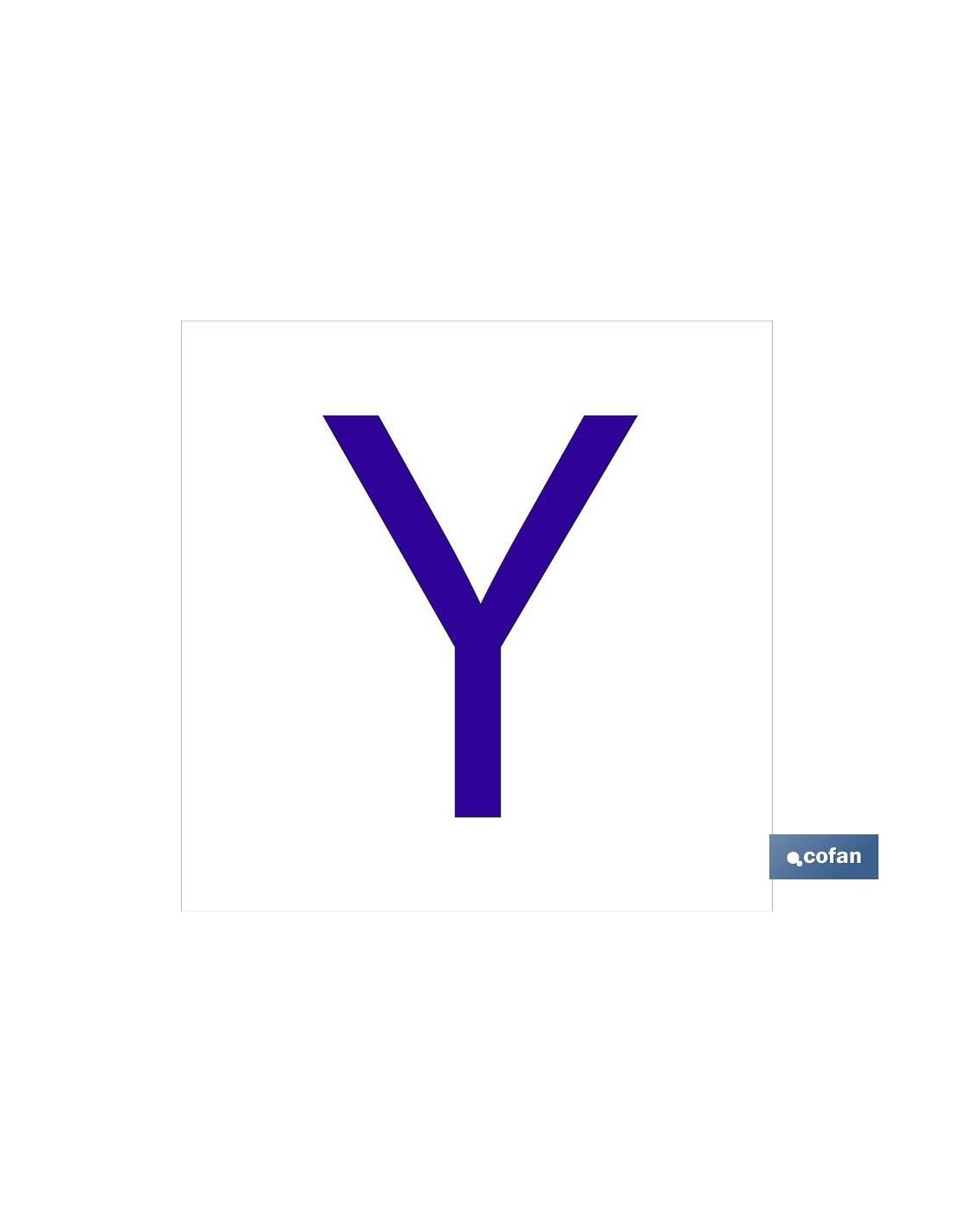 Y Letra en glasspack adhesivo con el fondo blanco y carácter azul con medida en 62 x 62mm. El diseño de la señal puede variar, pero en ningún caso se variará el significado de la misma.